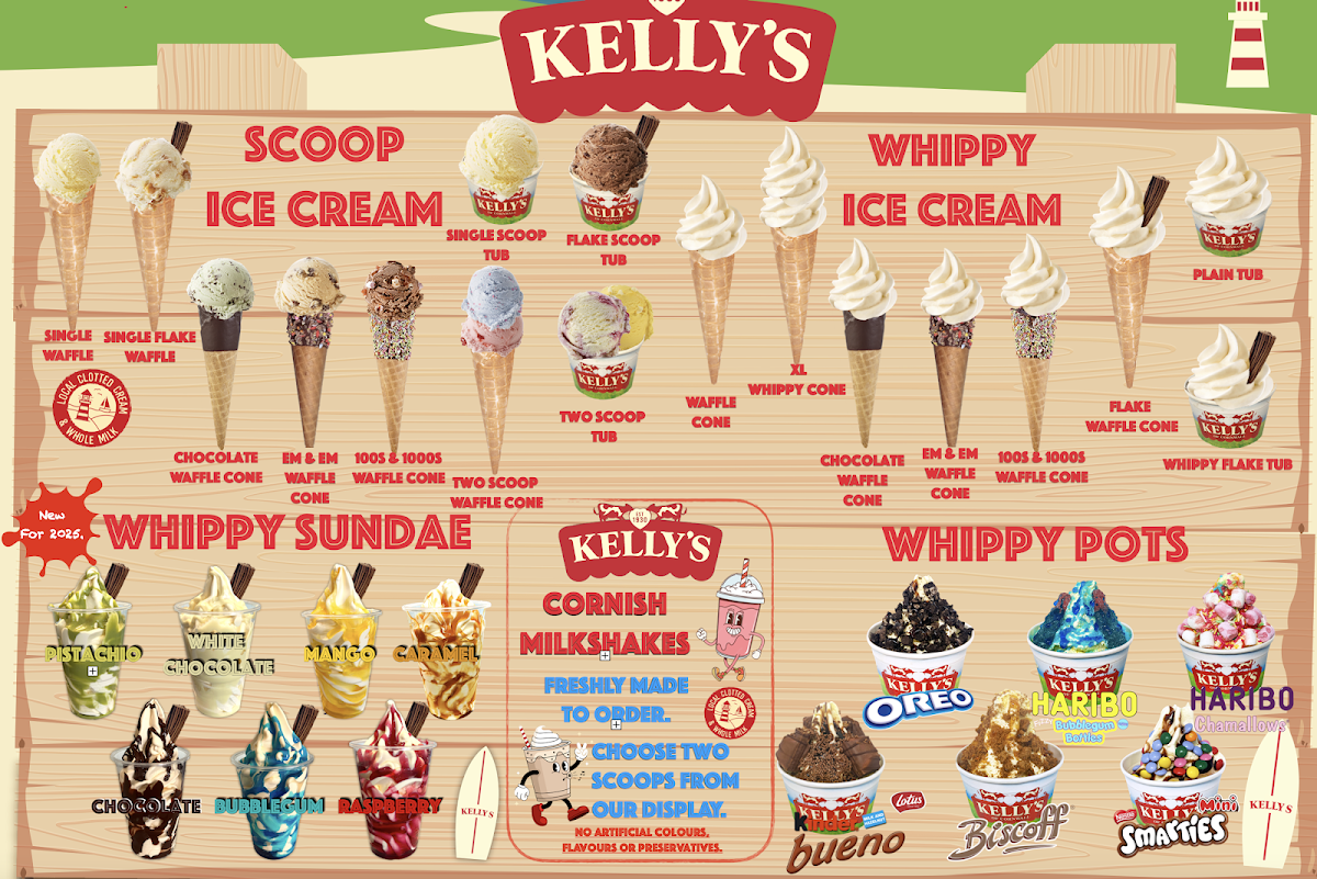 The highlight for me was the Cornish Milkshakes, made from two chosen scoops of their displayed ice cream—pure and natural, free from artificial colors and preservatives. The staff’s dedication to accommodating dietary needs, especially gluten-free options, reflects their genuine care and adds comfort to every visit. Whether you're savoring honeycomb, white chocolate, or bubblegum, Kellys blends quality ingredients with thoughtful service, making each scoop a delightful harbor-side treat.